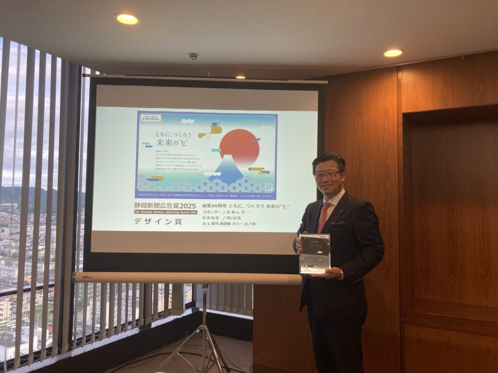 弊社の90周年広告「創業90周年 ともに、つくろう 未来の”ヒ”」が、静岡新聞広告賞2025においてデザイン賞を受賞しました。